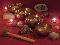 Dies würde ich mit verschieden Arten und Größen von Klangschalen machen. Jede Klangschale hat eine unterschiedliche Schwingungsenergie und Klangfarben, welche sich auf jedem Körper unterschiedlich entfalt.